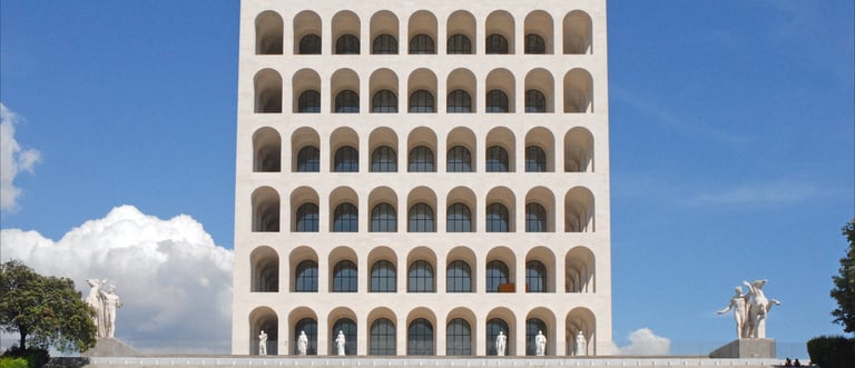 Architecture is immensely varied in Italy and spans millennia, from underground Etruscan tombs to Roman temples to Medieval castles, sprawling Renaissance palaces and Liberty-style villas–or Italian Art Nouveau–which lots of decorative wrought iron and stucco details gracing the facade. One architectural movement that was introduced during Mussolini’s dictatorial reign between 1922 and 1943 that you see in many public works projects and residential developments is fascist-style architecture. It’s essentially style that is modernist and rationalist in its approach, meant to exude the power of the state-and even intimidate. One of the most notable examples is just south of Rome’s historical center in a residential and business district called EUR, which translates to Universal Roman Exposition. The sprawl of stately, gleaming white buildings created out of limestone, tuff and marble and draw inspiration from ancient Roman architecture with its mix of arches, porticoes, columns and monuments awes and repels at the same time.