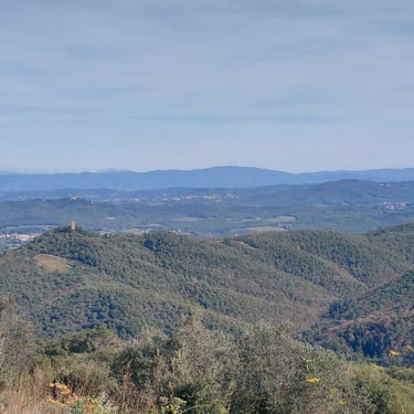 My second favorite view appears along another favorite walk at higher elevations below Pratomagno's peaks. I love that I can see clear across the valley to the hills where I seek out the Galatrona watchtower. During clear weather, this view stretches even further to the Valdichiana and beyond, to the imposing Monte Amiata, an extinct volcano located on the Grosseto province. I love this walk for the variety of flora, and for how the road twists and turns as it slopes downwards, working your muscles as you move back up the hill. As soon as I arrive, I squint to see I I can make out Monte Amiata's two main peaks that gently taper off and disappear. (see my previous post on Mt. Amiata for a sunset view). Its not just for this particular view though. It sometimes happens that we run into someone we know on our walk and the walk itself and you encounter along it becomes a topic of conversation. For instance, I love that you'll hear the bleating of goats in a clearing where we park our car, the domain of a young couple who raise goats for cheese that we can buy at our local farmer's market. I can come here through the seasons and forage tree branches and twigs, pine cones and acorns, even wildflowers, that I arrange in my home for the holidays, or just because. A few times, we met an older woman who was gathering bunches of heath, erica scoparia, with which she made brooms. And I love that feeling of after a long walk down the winding road, a feeling of satedness that calms the mind and soul.