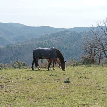 Two of my favorite panoramas that I’ve photographed over time, in every season, are located on opposite sides of my valley, the Valdarno, named so because of the Arno that cuts through it toward Florence. My go-to spot for walks on the Chianti side runs through chestnut groves, fruit trees with views of our valley and beyond our mountain Pratomagno. The pathway ends at a small village, partly an farmhouse where a couple from Northern Italy rent out apartments and keep a pair of friendly, beautifully groomed horses who come to greet us when they’re out of their stables. The views look toward a medieval watchtower called Galatrona where a famed sorcerer called Nepo (like in other regions, white magic was widespread in Tuscany) mixed potions for the de’ Medici clan. I adore gazing at it and thinking how it’s managed to stand so stalwart for so long, How much of history it’s seen, how many feet have climbed its narrow steps leading up to its own breathtaking views of the valley.